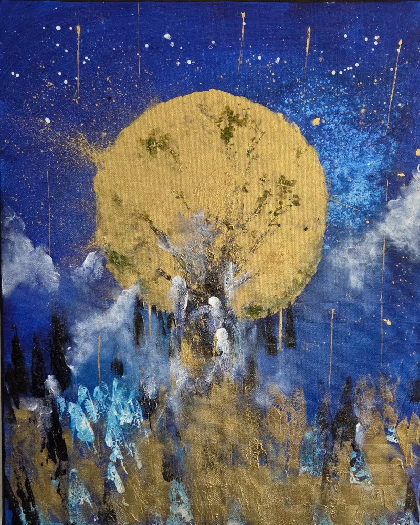 À travers mes peintures inspirées et vibrantes, j’ouvre une fenêtre vers l’invisible. Chaque œuvre est le fruit d’une connexion profonde, où couleurs et formes deviennent messagères d’énergies subtiles.