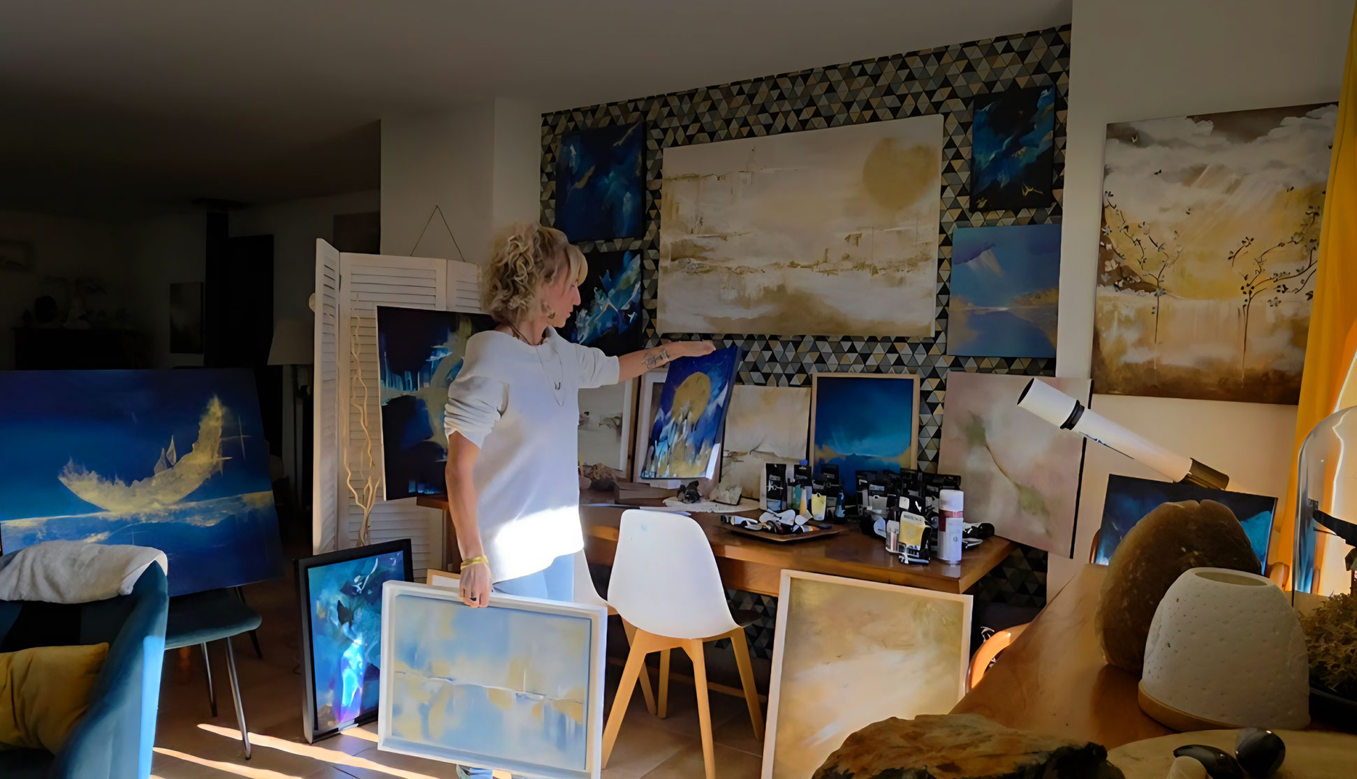 Plongez dans cet univers artistique et spirituel, où chaque toile est une invitation à la contemplation et à la transformation.